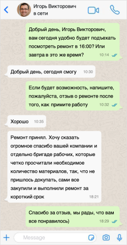 После заключения договора приступаем к ремонту. Продолжительность капитального ремонта составляет двадцать дней, а косметического пять. Срок работы зависит от площади помещения и его особенностей.